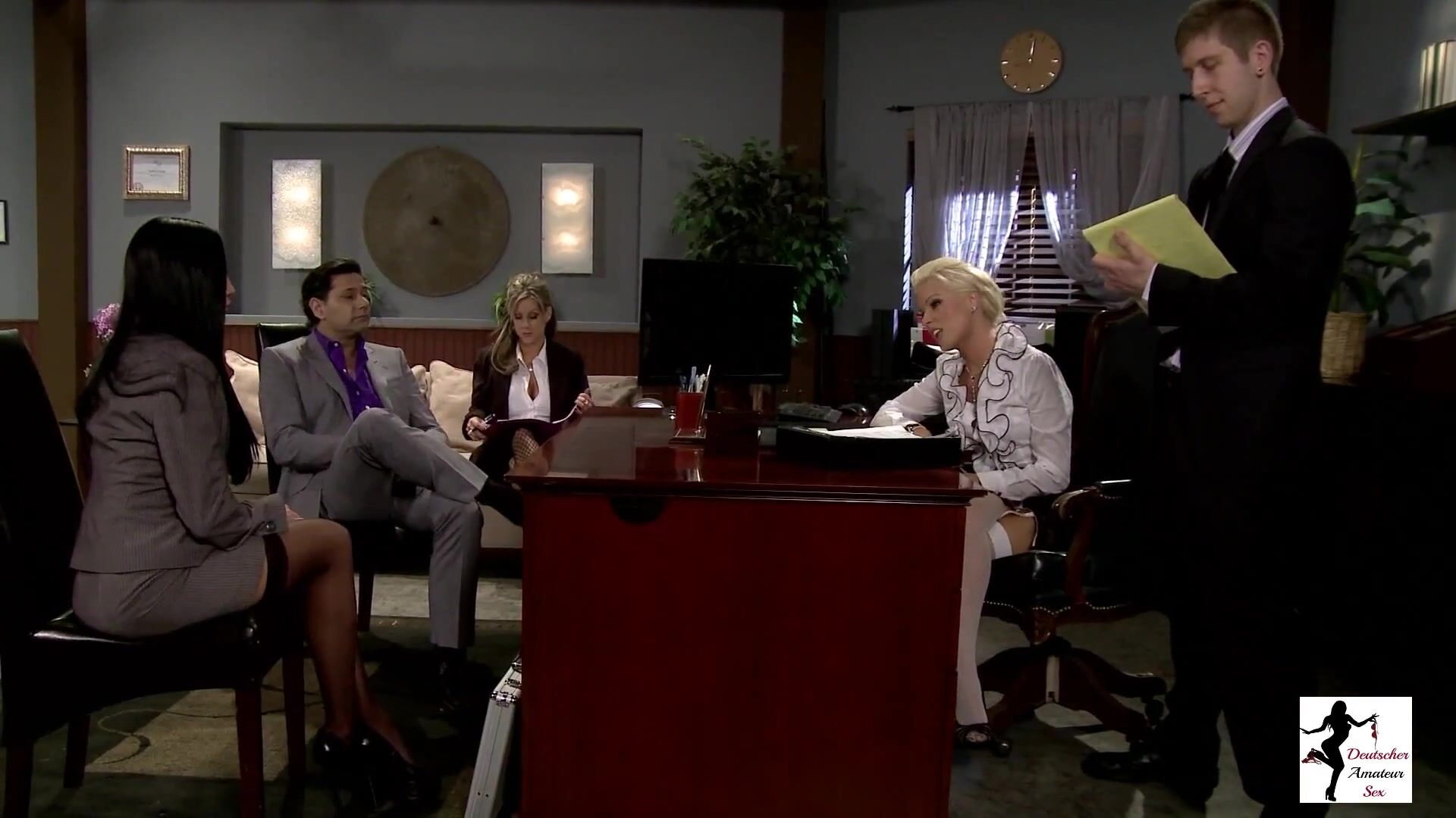 Audrey Bitoni Takes Part in an Office Orgy that Ends with Cum in her Mouth