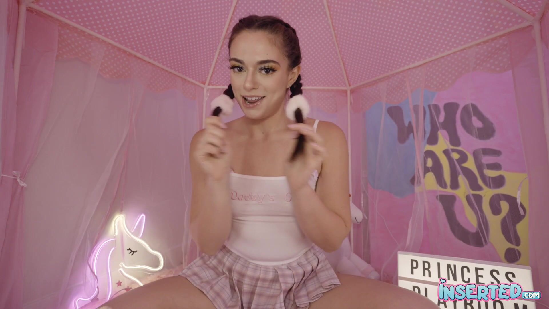 Sophia is supposed to be doing her homework but how can she concentrate when her pretty pussy is so horny? She just has to play with it and thenn invite you over to stuff it full of her favorite toy...hard cock! She even wants to suck on it so put it in her mouth, too. Isnt it fun being in her room?