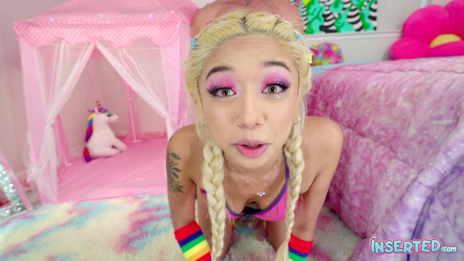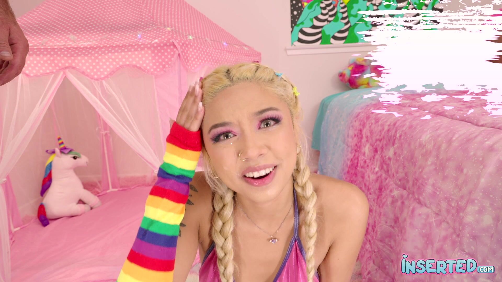 Gia is so excited to finally have someone in her room with her. She is wearing her favorite color, pink, has a revealing little outfit on, and can’t wait to play with her first hard cock! She starts by making her kitty purr with her fingers and then it’s time for dick in her pink slit and down her throat until she has tears Insertions are fun!