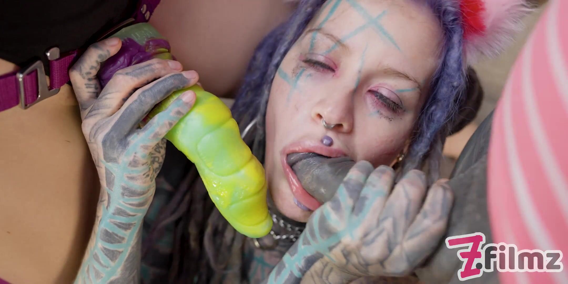 CATPLAY fetish SLOPPY BLOWJOB from TATTOO pornstar - deepthroat, spit, strap on, femdom, facial cum, goth alt punk