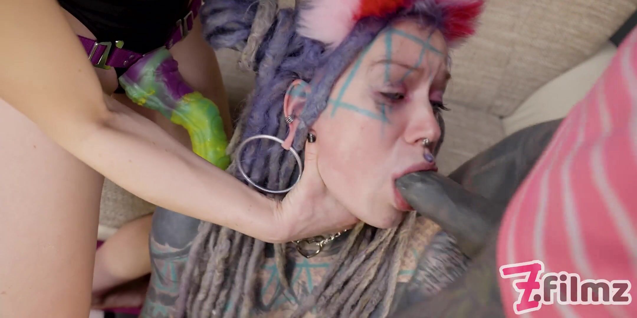 Goth Slut Cheats on Boyfriend to get Dominated and Fucked by Strap on