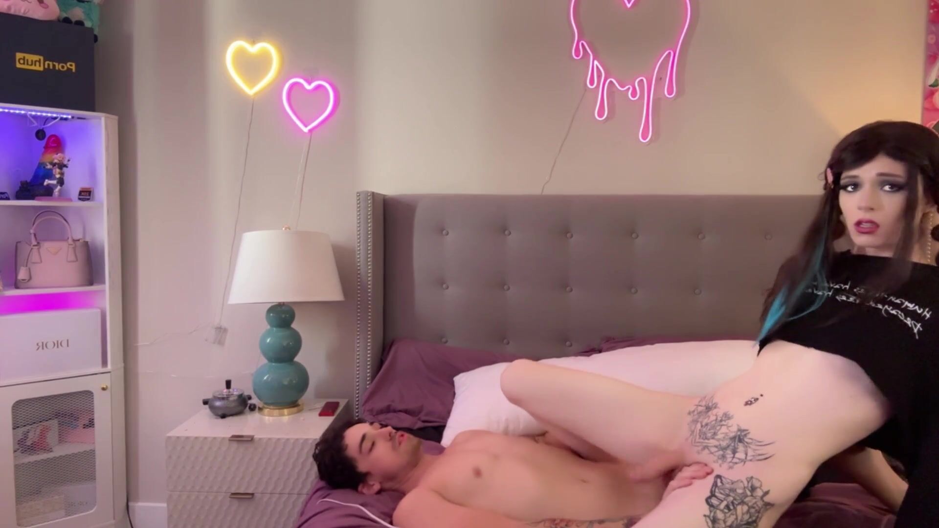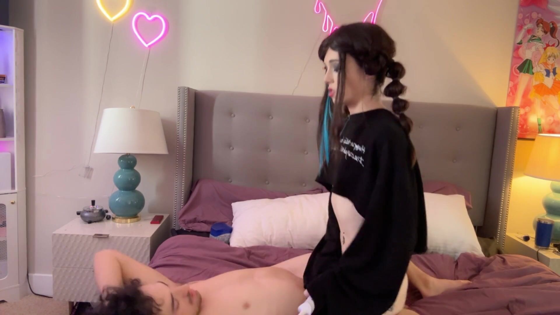 Goth Tgirl Ties down her Roommate and uses him