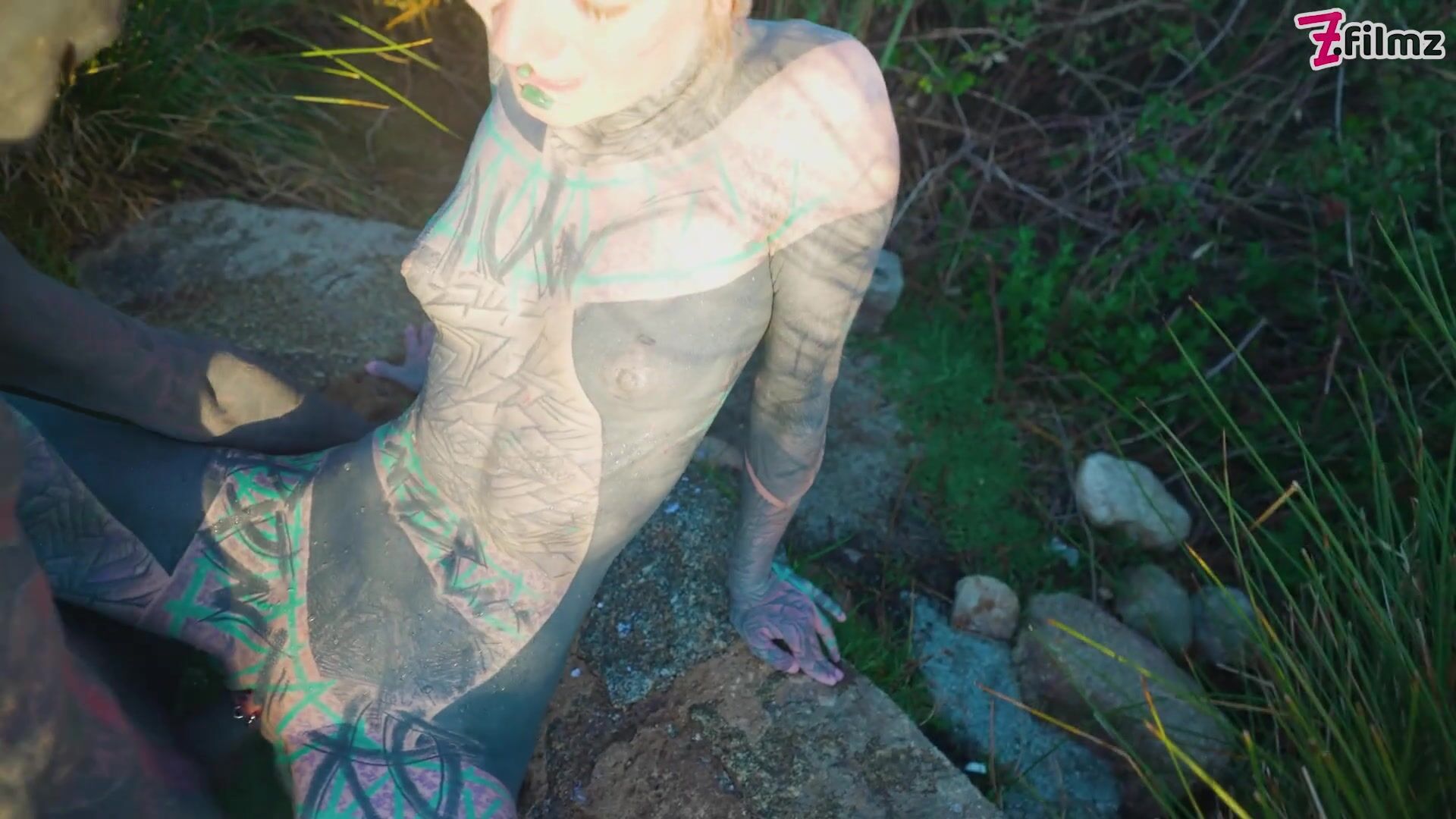 Alternative Couple having Wild Outdoor Sex in Outdoor Hot Spring