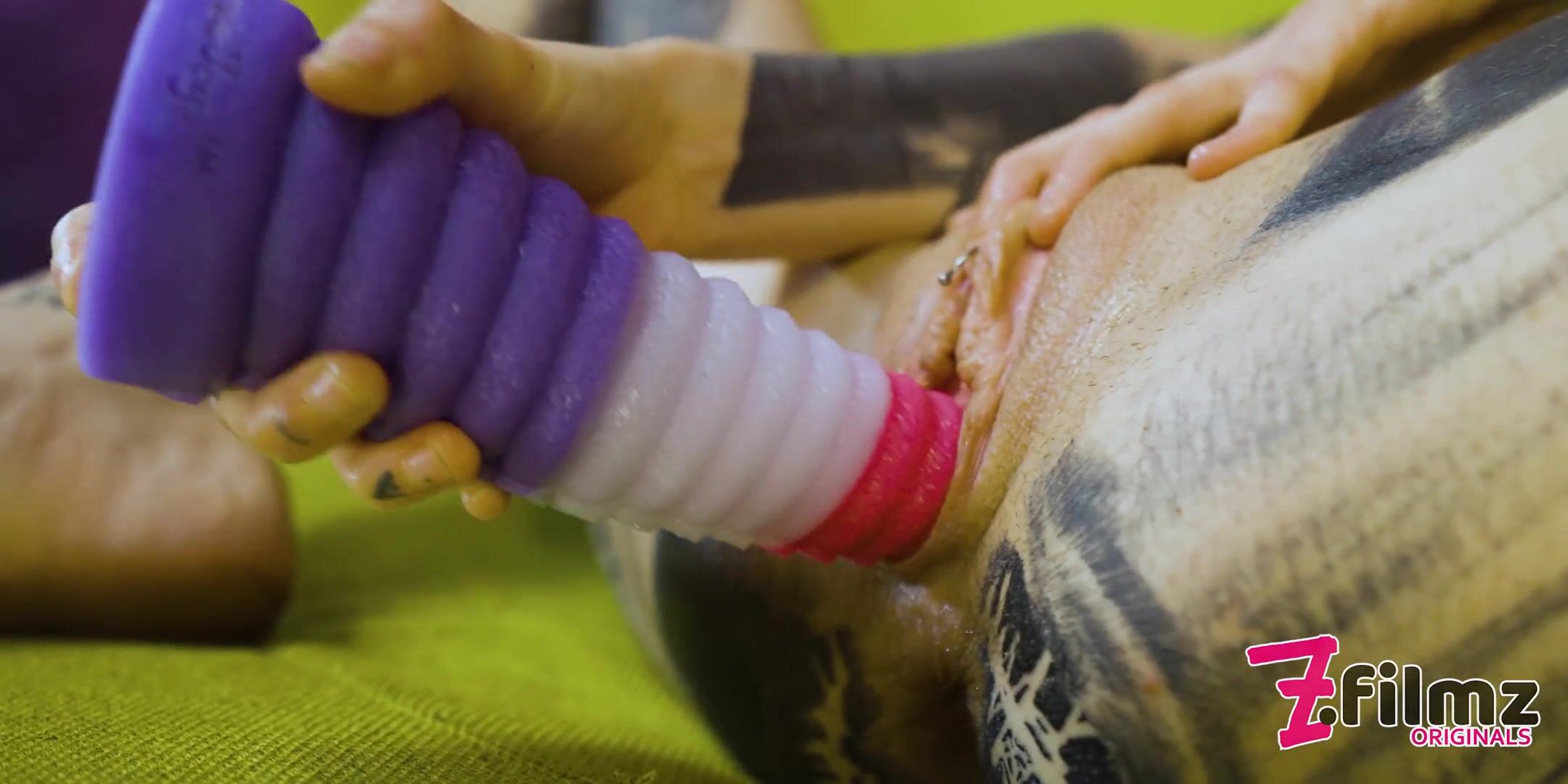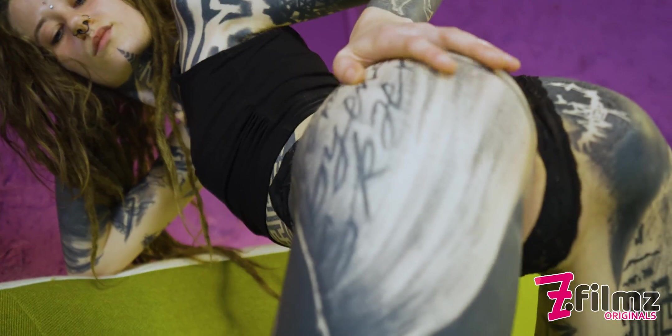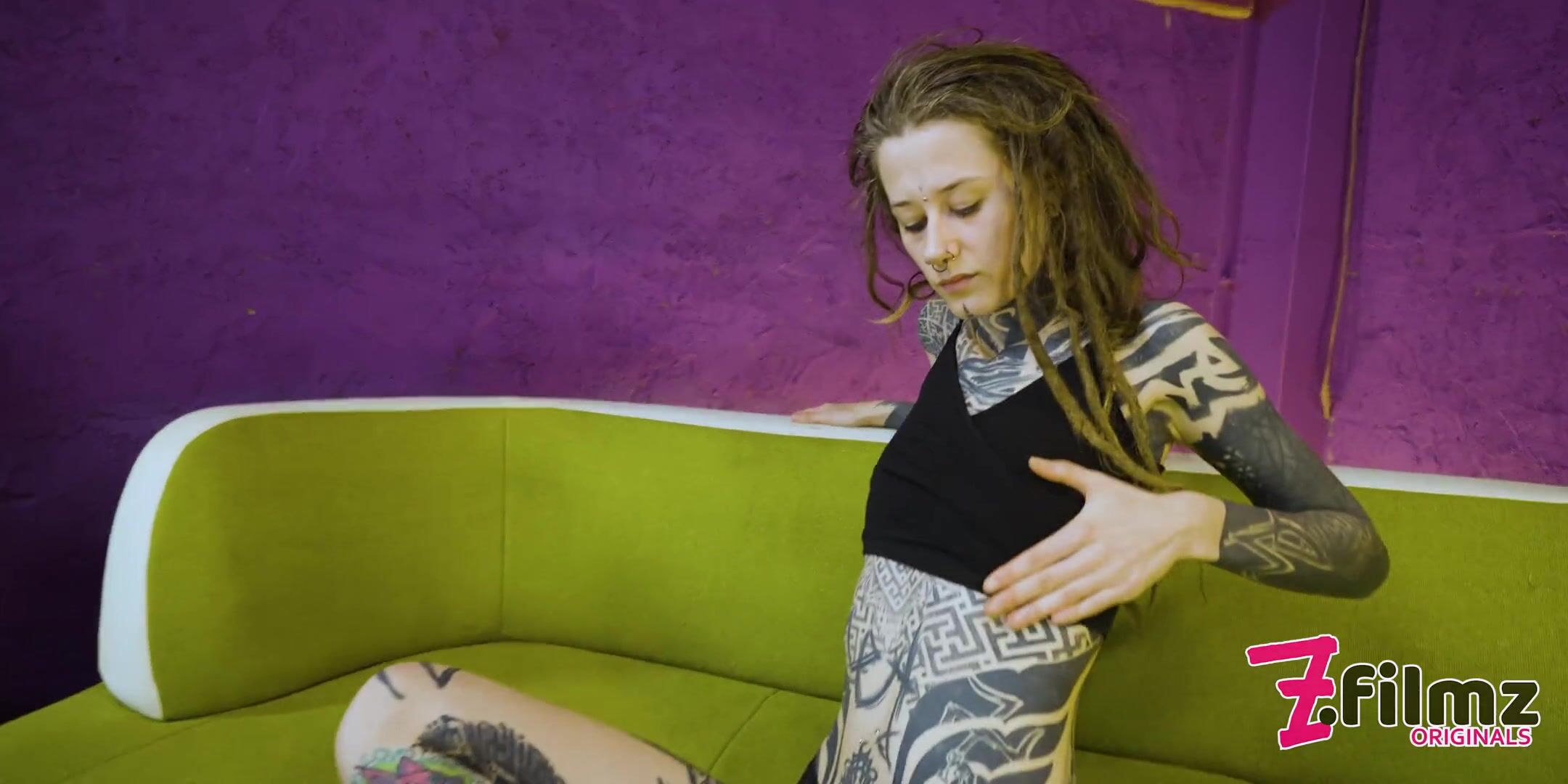 Young Tattooed Alternative Dreadhead Fucking her own Pussy with Crazy Psychedelic Toys