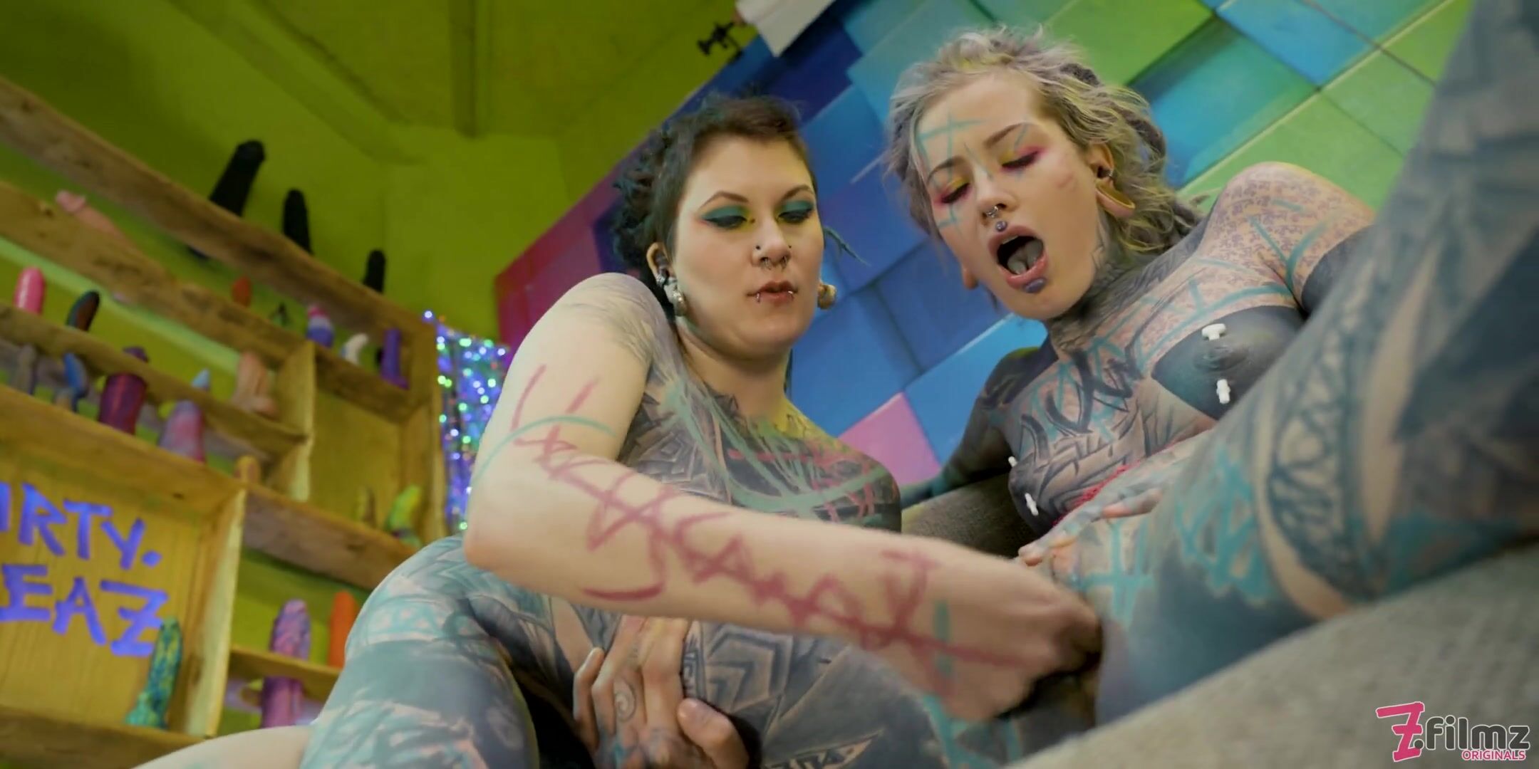 Alternative TEENS Fuck with TATTOED Guy, Big Dick, Sloppy Blowjob, Threesome, ANAL GAPES, ATM