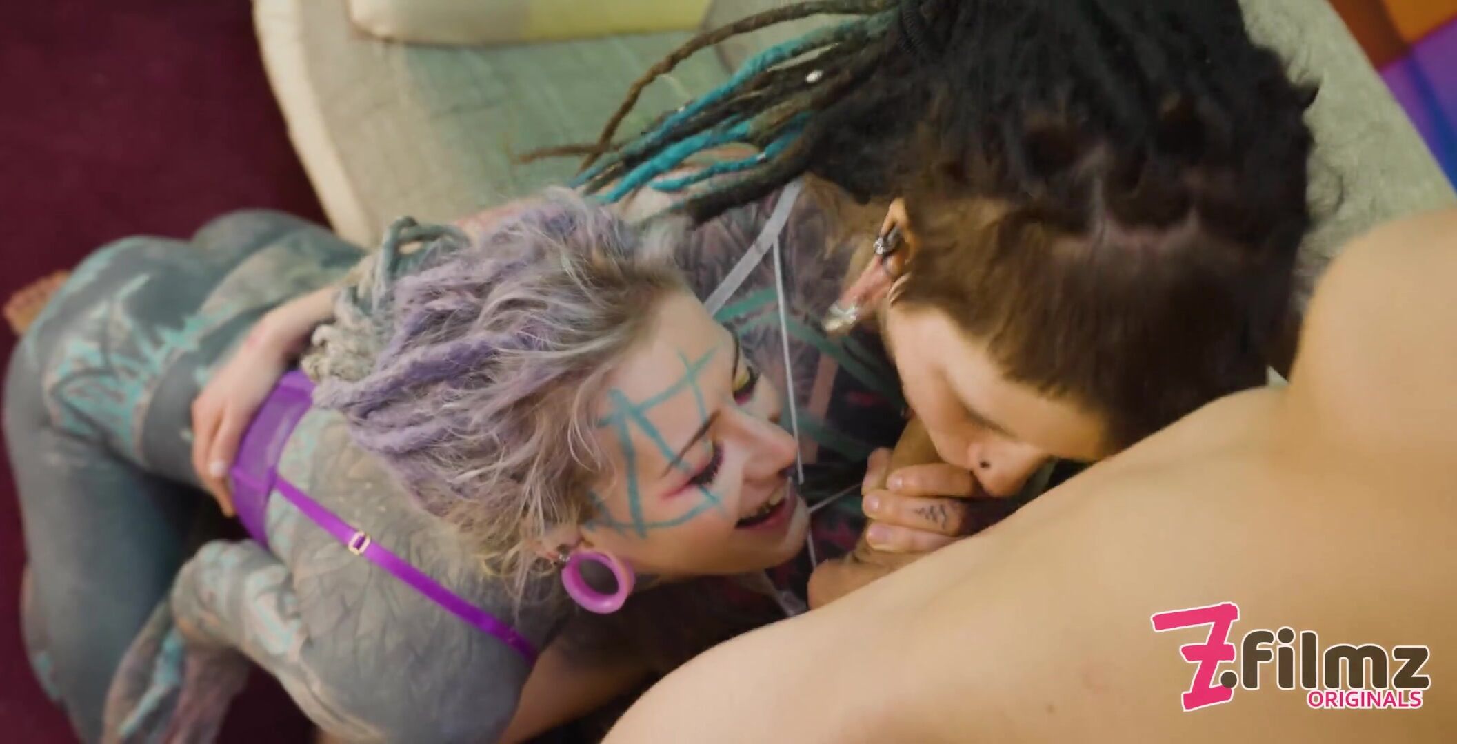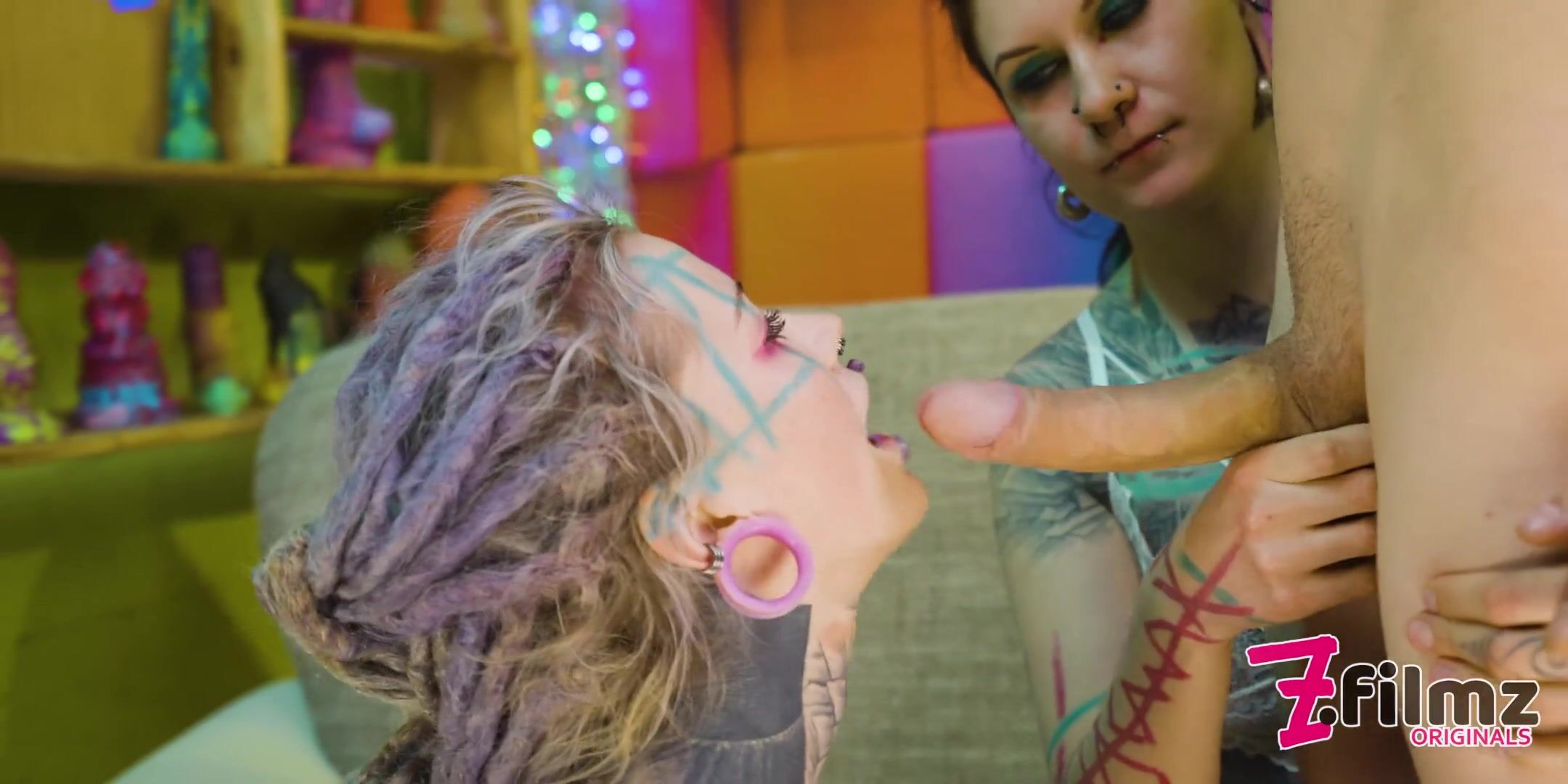 Inked POV Slut with Colored Hair Rides and Sucks BFs Shaft