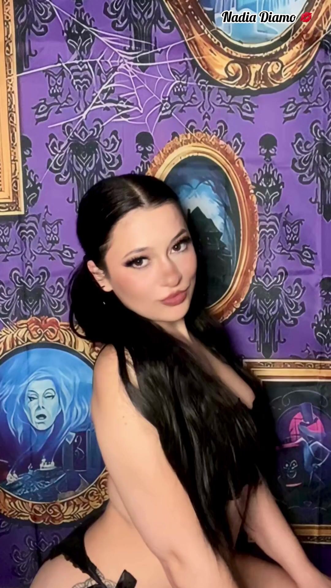 Goth Girl Pigtails Takes off Bra in Haunted House with Music