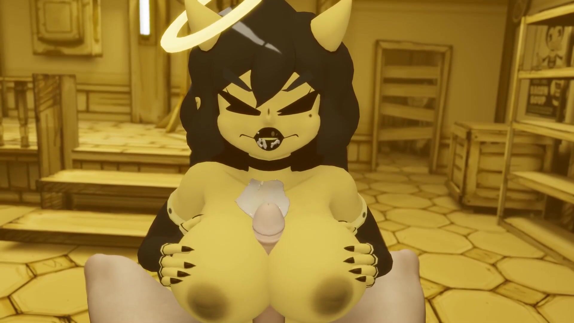 Cum on the Face Bendy and the Ink Machine Angel Jerks off a Dick with her Big Breasts for a Guy