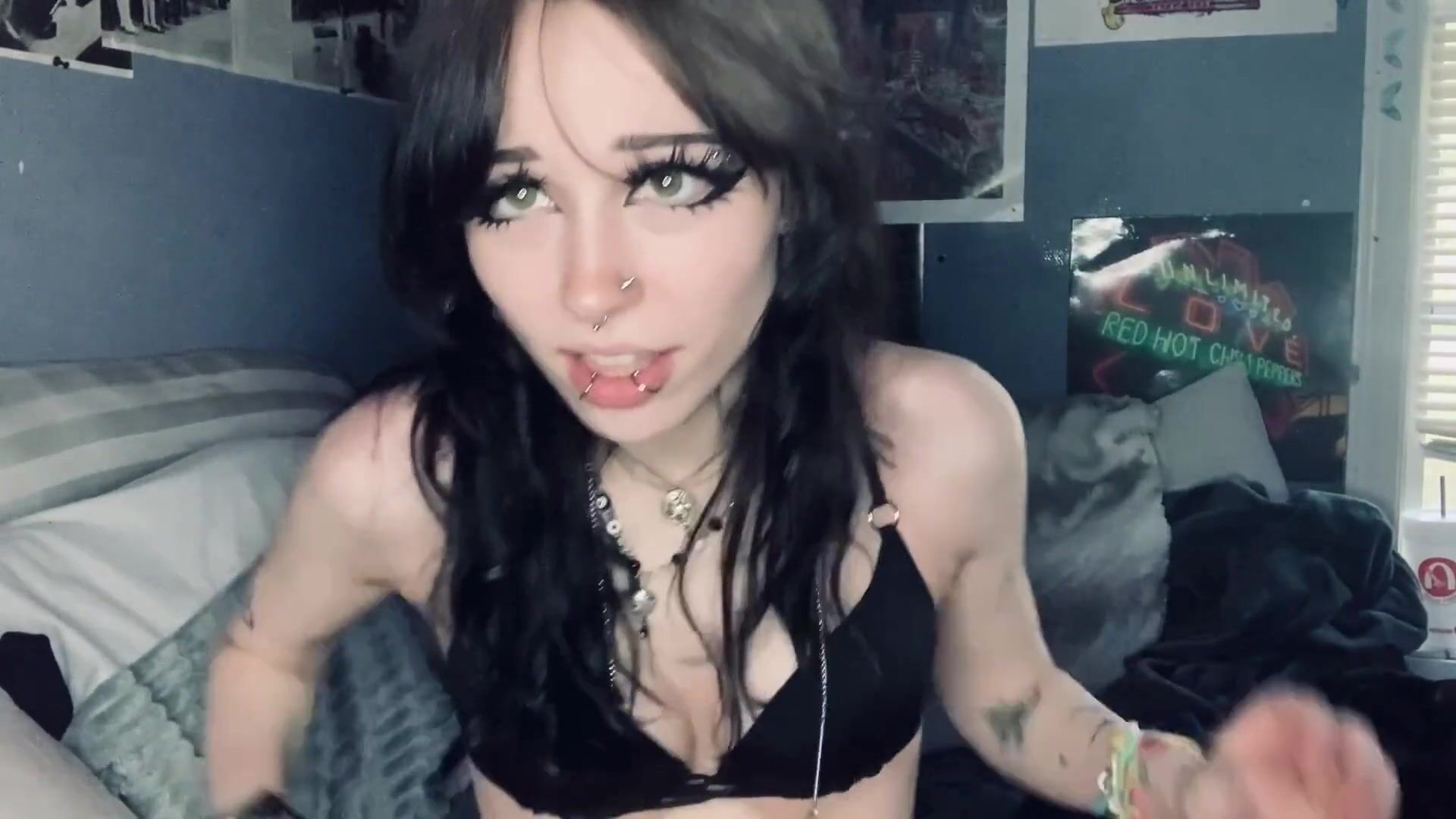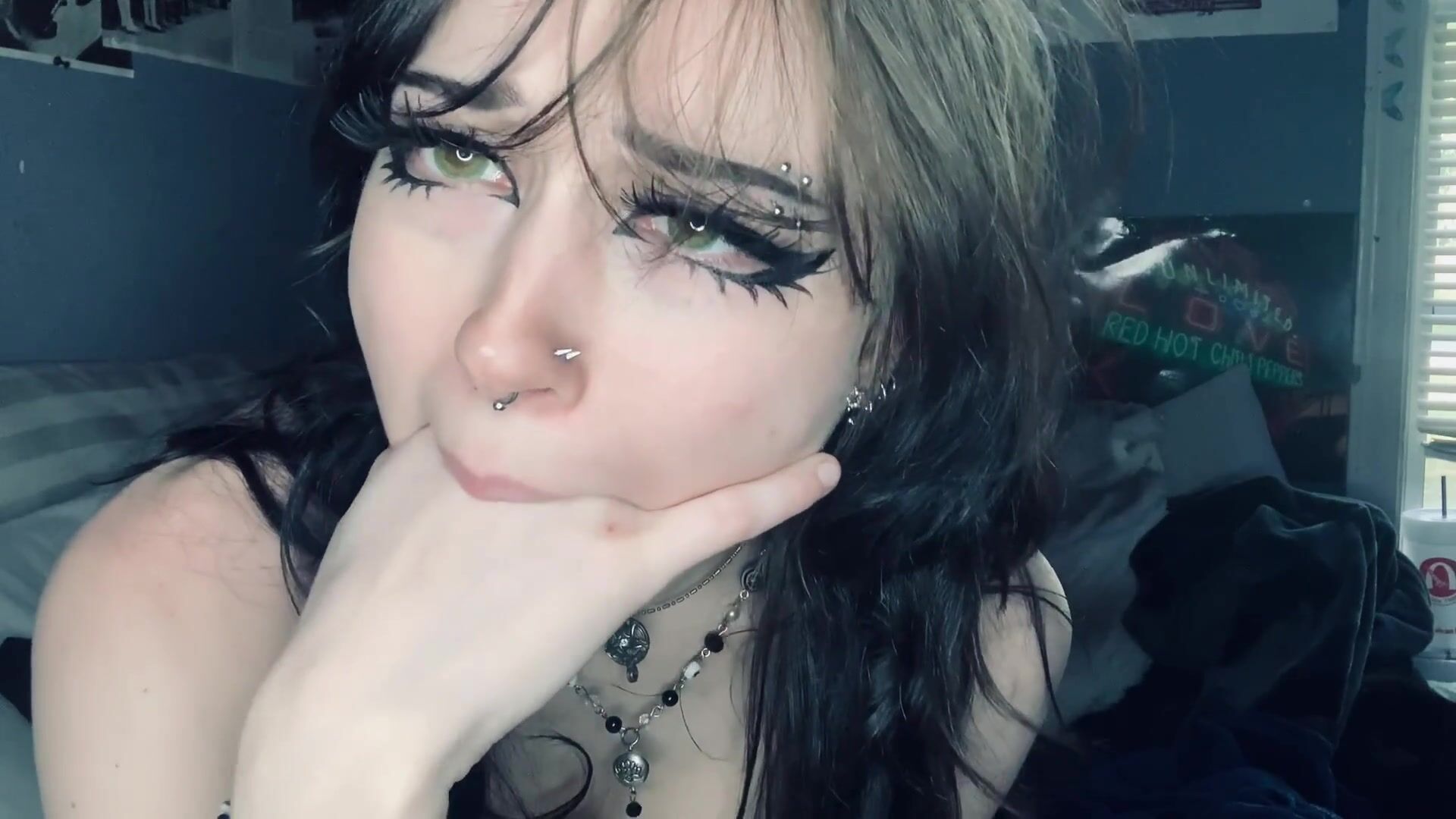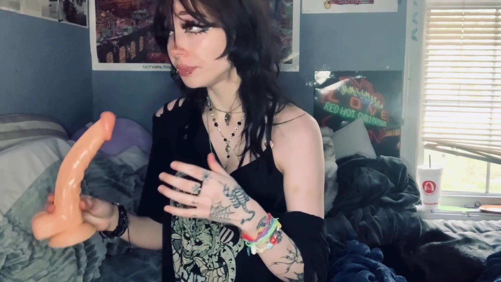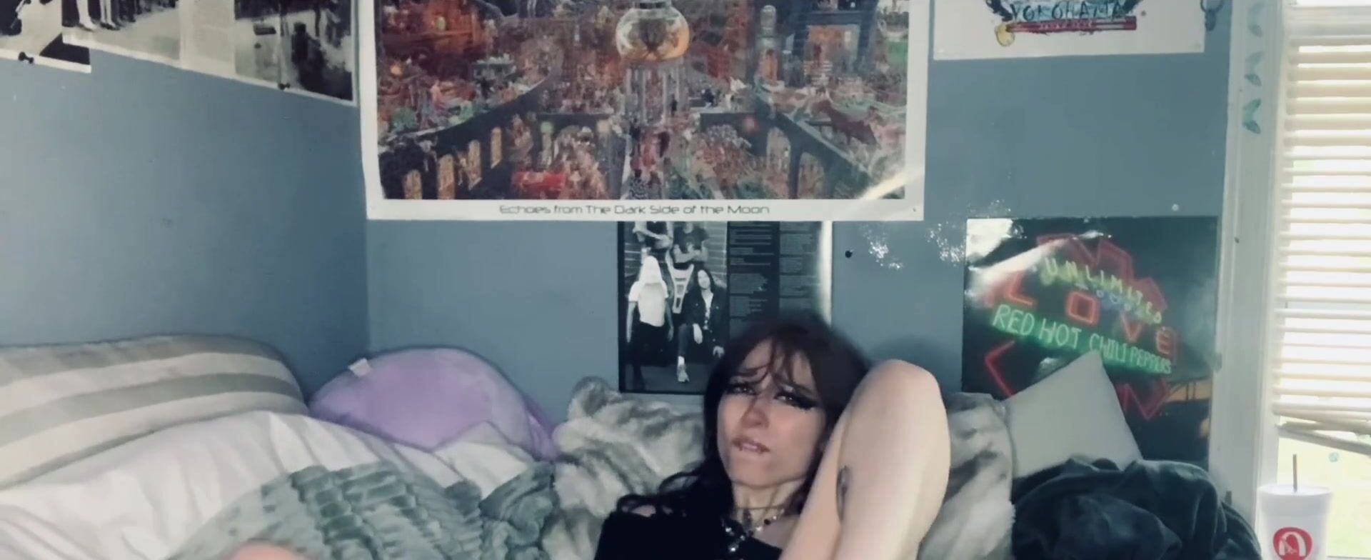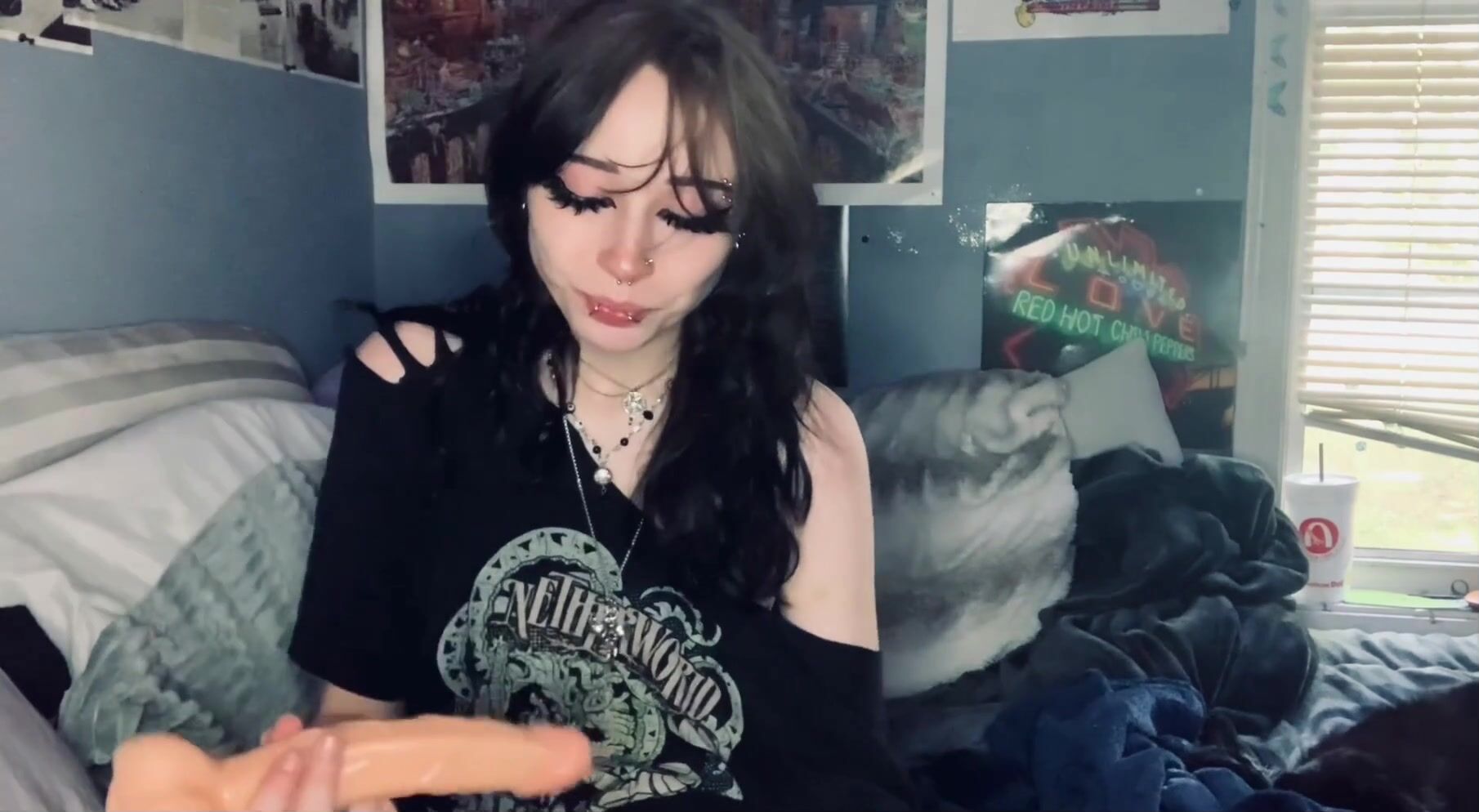 Slutty Goth Teen Fingers her little Pussy