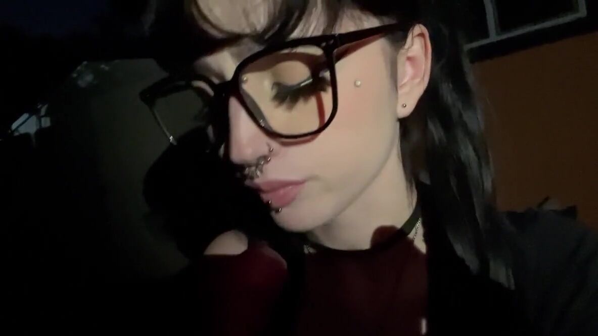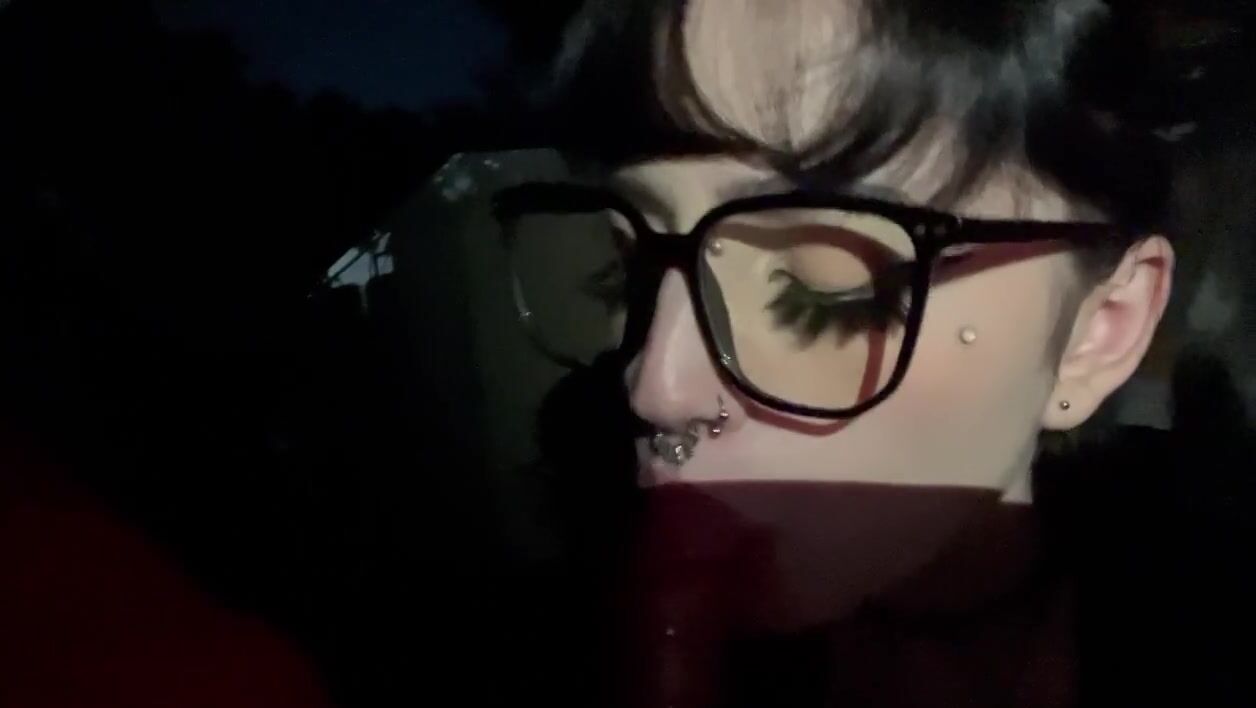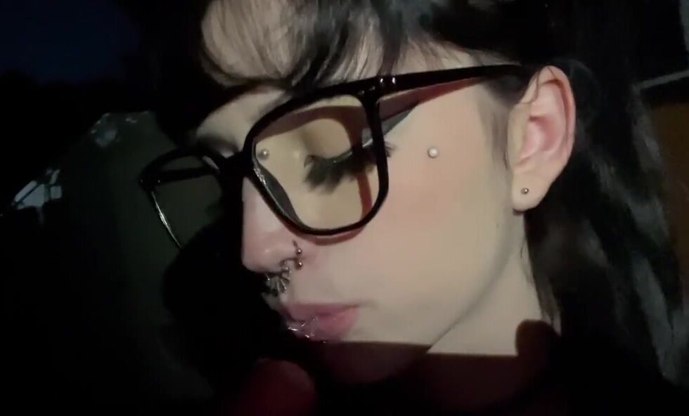 Pierced Goth Girl Takes a Cumshot Outdoors