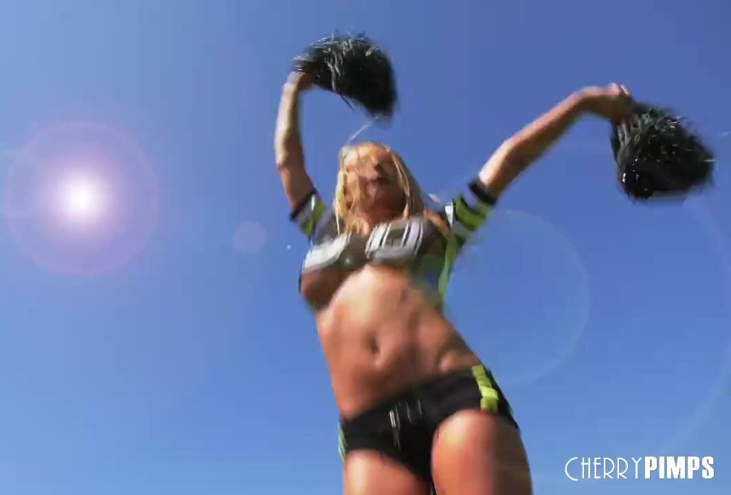 Busty Blonde Cheerleader Honey Blossom Seduces Quarterback Charles Dera with Shaved Pussy